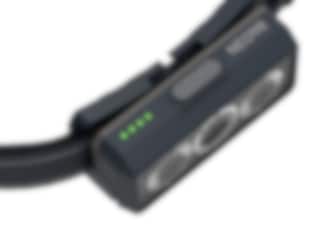 Lampan tänds/släcks av en brytare på lamphuvudet. Funktioner som reflekterande pannband och rött blinkande bakljus ökar säkerheten i trafiken. Lampan har ett vippbart lamphuvud för individuell anpassning. Viktfördelningen mellan lampa och batteri ger perfekt balans och komfort, lampan levereras med bröstbälte som extrautrustning. Snabb och enkel laddning av det uppladdningsbara Li-ion 3,7 5000 mAh-batteriet, laddning via magnetisk laddare/LED. Lampan har varning för lågt batteri, efter den första varningen lyser lampan i ytterligare en timme så du riskerar inte att bli strandsatt i mörkret utan någon ström kvar.