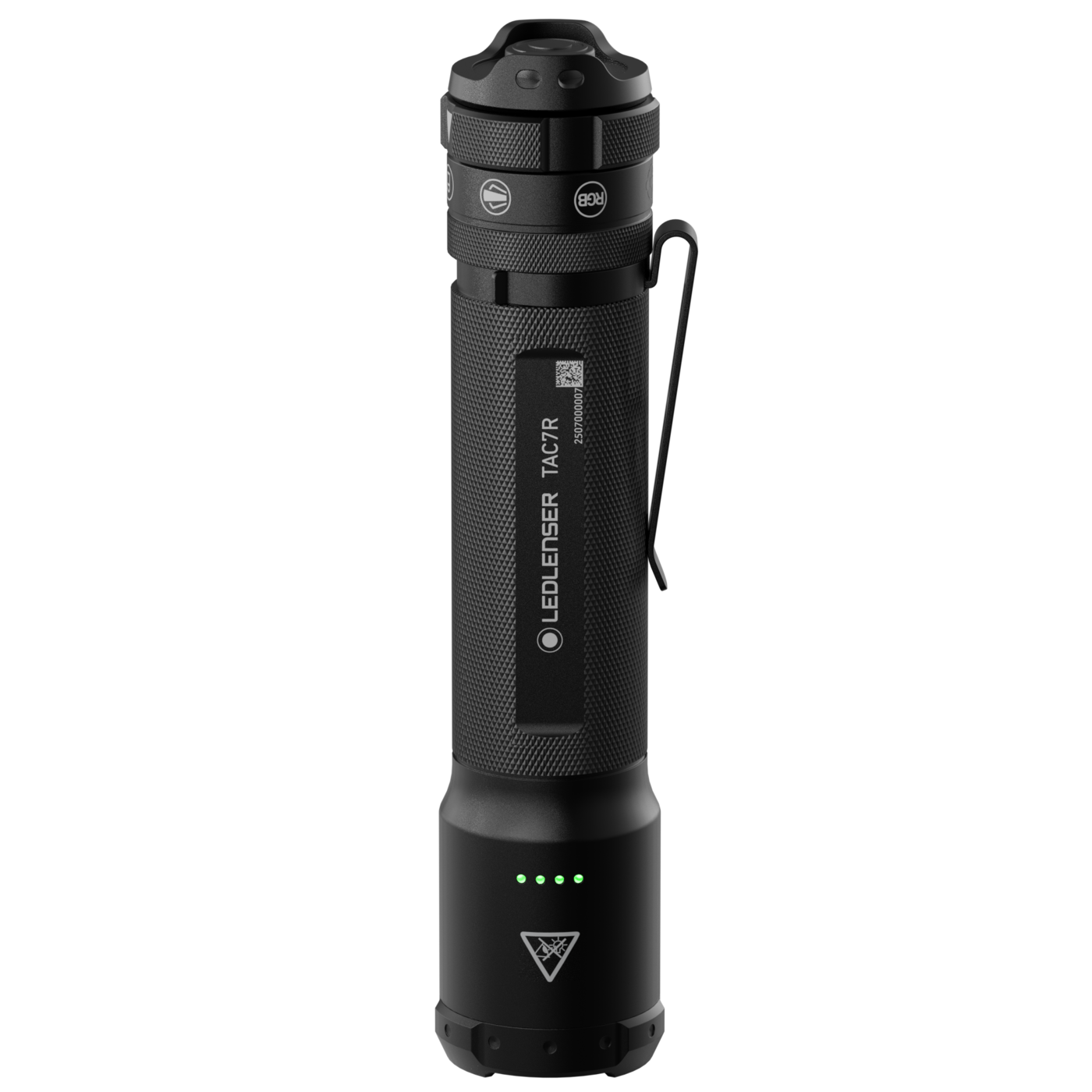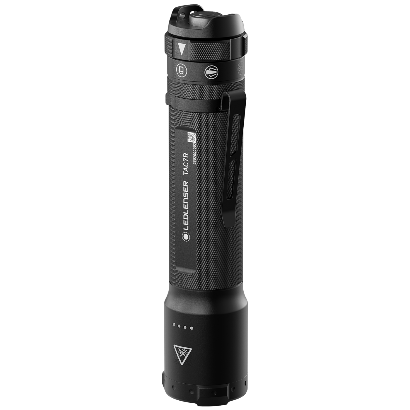 Vår största taktiska ficklampa rycker in när ljus verkligen betyder något – på dina viktigaste uppdrag. Med TAC7R kan inget gå fel. Den är robust och enkel att använda tack vare Mode Select Ring och taktisk ändknapp, och levereras dessutom med rött, grönt och blått ljus. Som medlem av polis-, beredskaps- eller säkerhetsstyrkor kan du alltid lita på denna kraftfulla taktiska ficklampa. Tack vare vår banbrytande Multi-Lens-teknik kan du välja mellan ett taktiskt ljusmönster som kombinerar flodljus och spot, eller använda dem var för sig. Uppladdningsbar via USB-C.