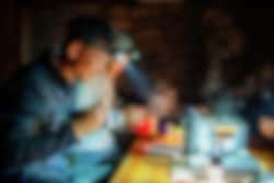 Smal, uppladdningsbar pannlampa med tre ljusstyrkenivåer och rött frontljus.