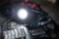 Perfekt arbetslampa som inte är större än att den får plats i verktygslådan. Solida kylflänsar i aluminium ser till att den håller sig tillräckligt sval även om den lyser länge. På baksidan hittar du en multifunktionsströmbrytare med både batteriindikator och laddningsindikator.