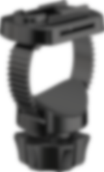 Klämfäste som enkelt kan monteras på handtag, cykelstyre eller andra rör. För att kunna fästa lampan behöver du ett lampfäste i tillägg.